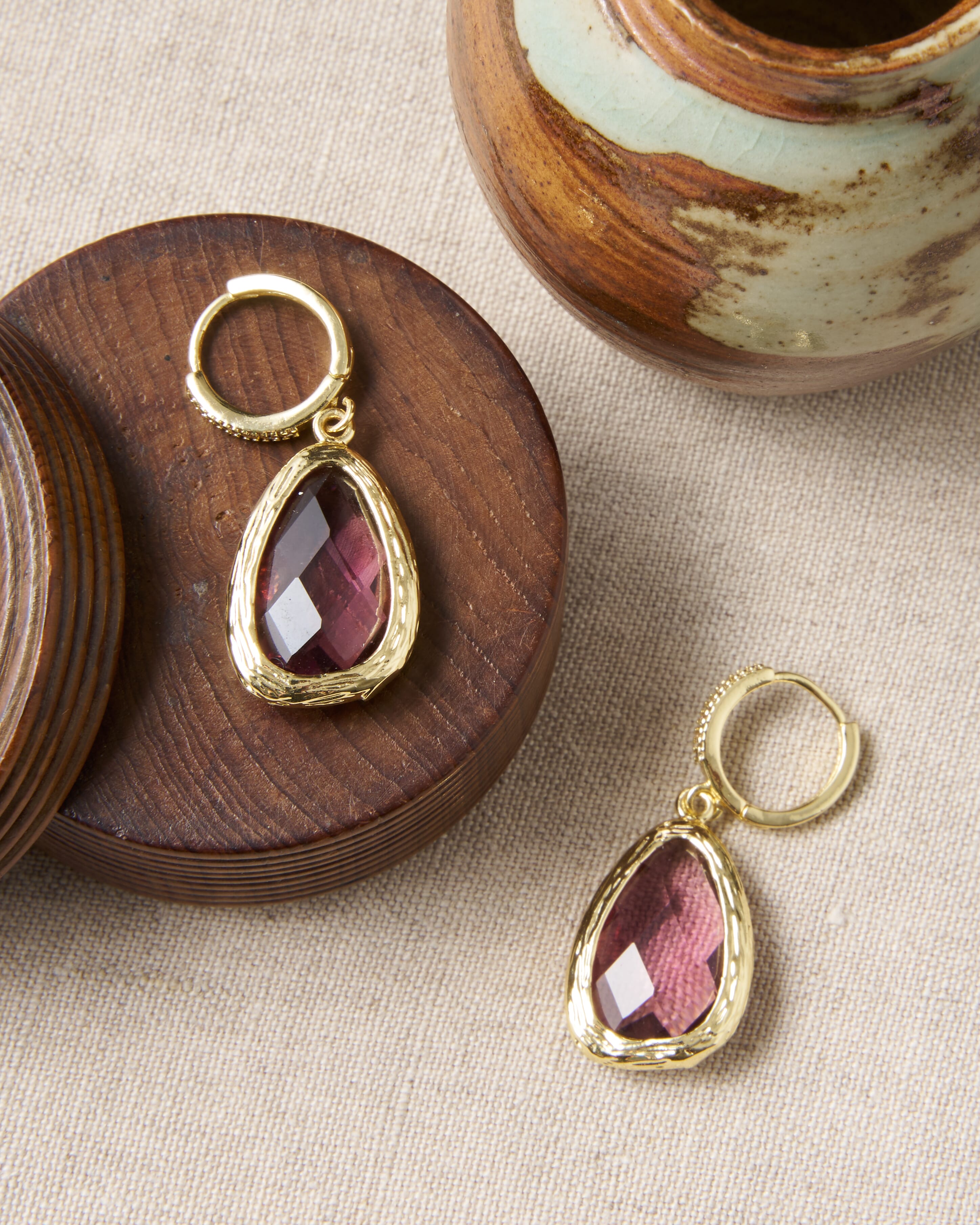 We are committed to making long-lasting, quality clothing in natural fibres and work with skilled artisans to achieve this goal. Brora Hoop & Teardrop Pendant Earrings Gold & grape