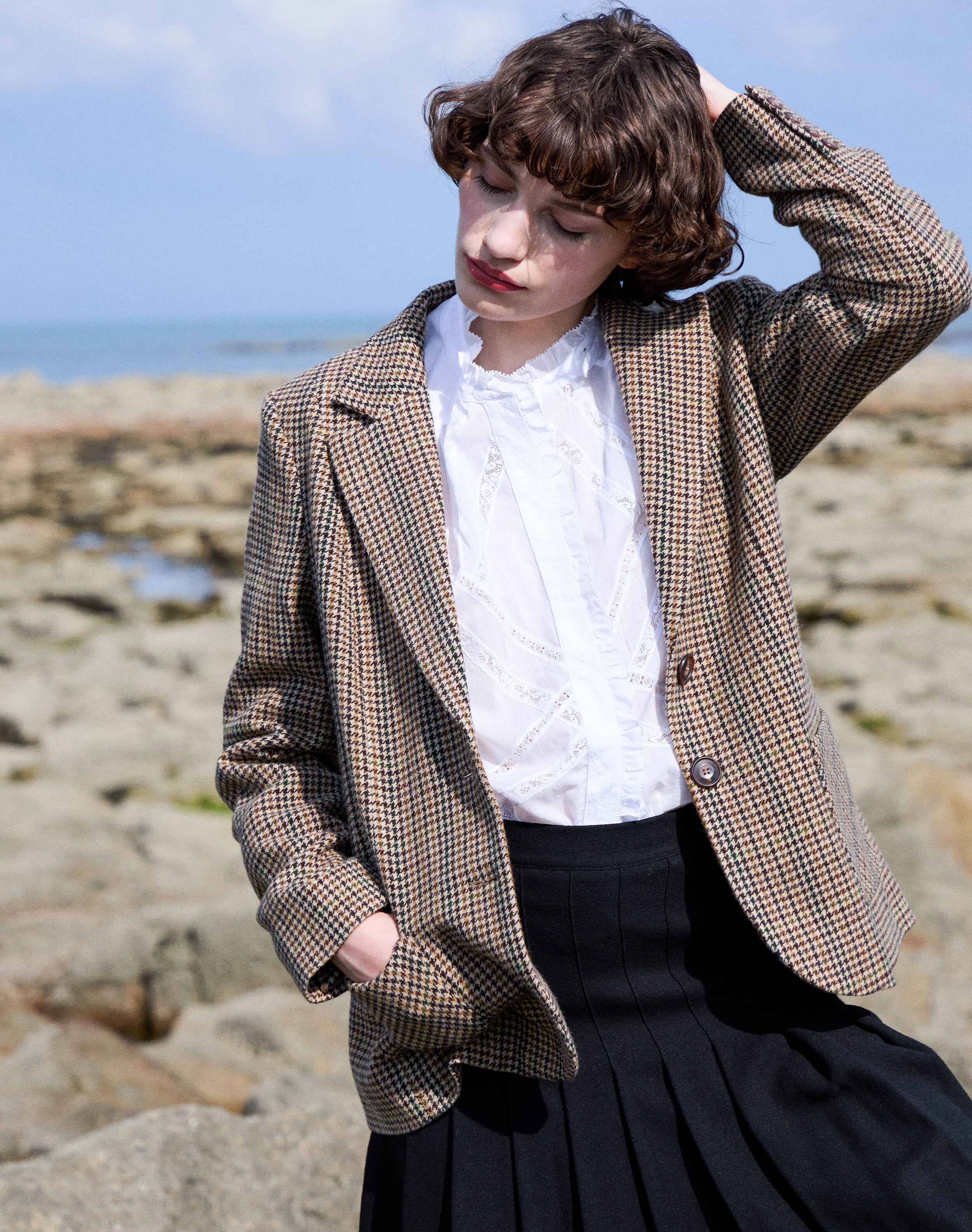 We are committed to making long-lasting, quality clothing in natural fibres and work with skilled artisans to achieve this goal. Brora Houndstooth Wool Blazer Chocolate & oatmeal