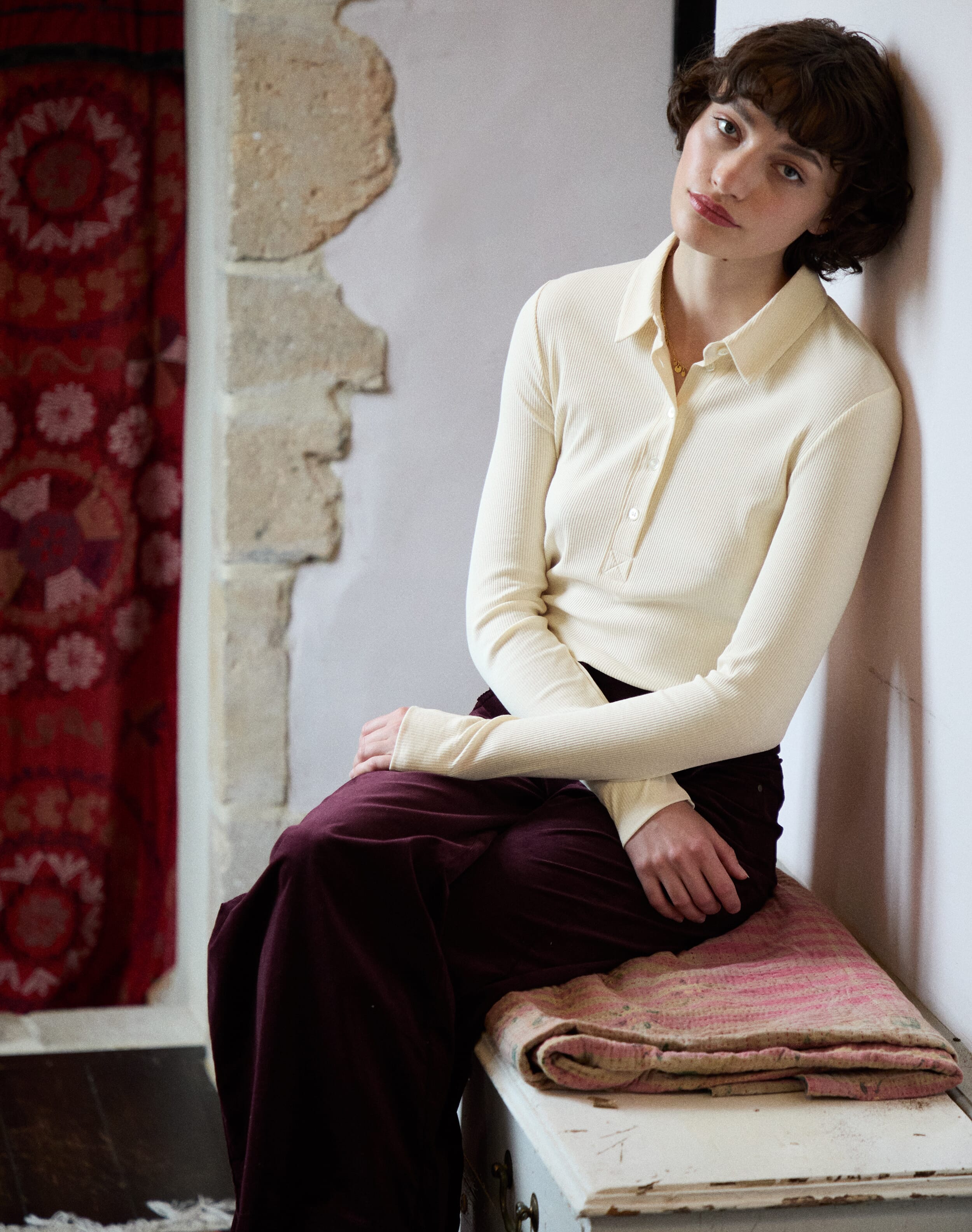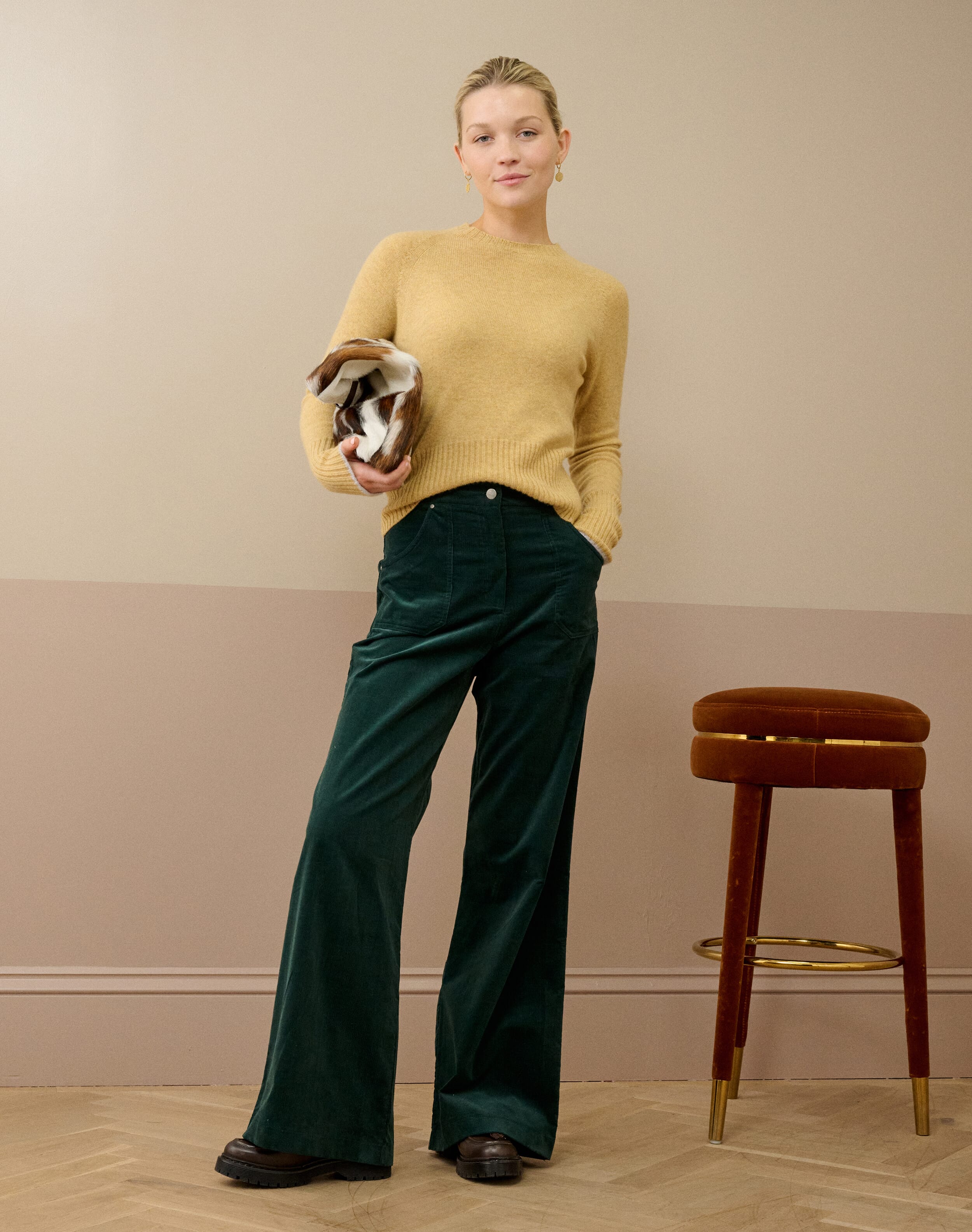 We are committed to making long-lasting, quality clothing in natural fibres and work with skilled artisans to achieve this goal. Brora Organic Needlecord High Waist Trousers Damson
