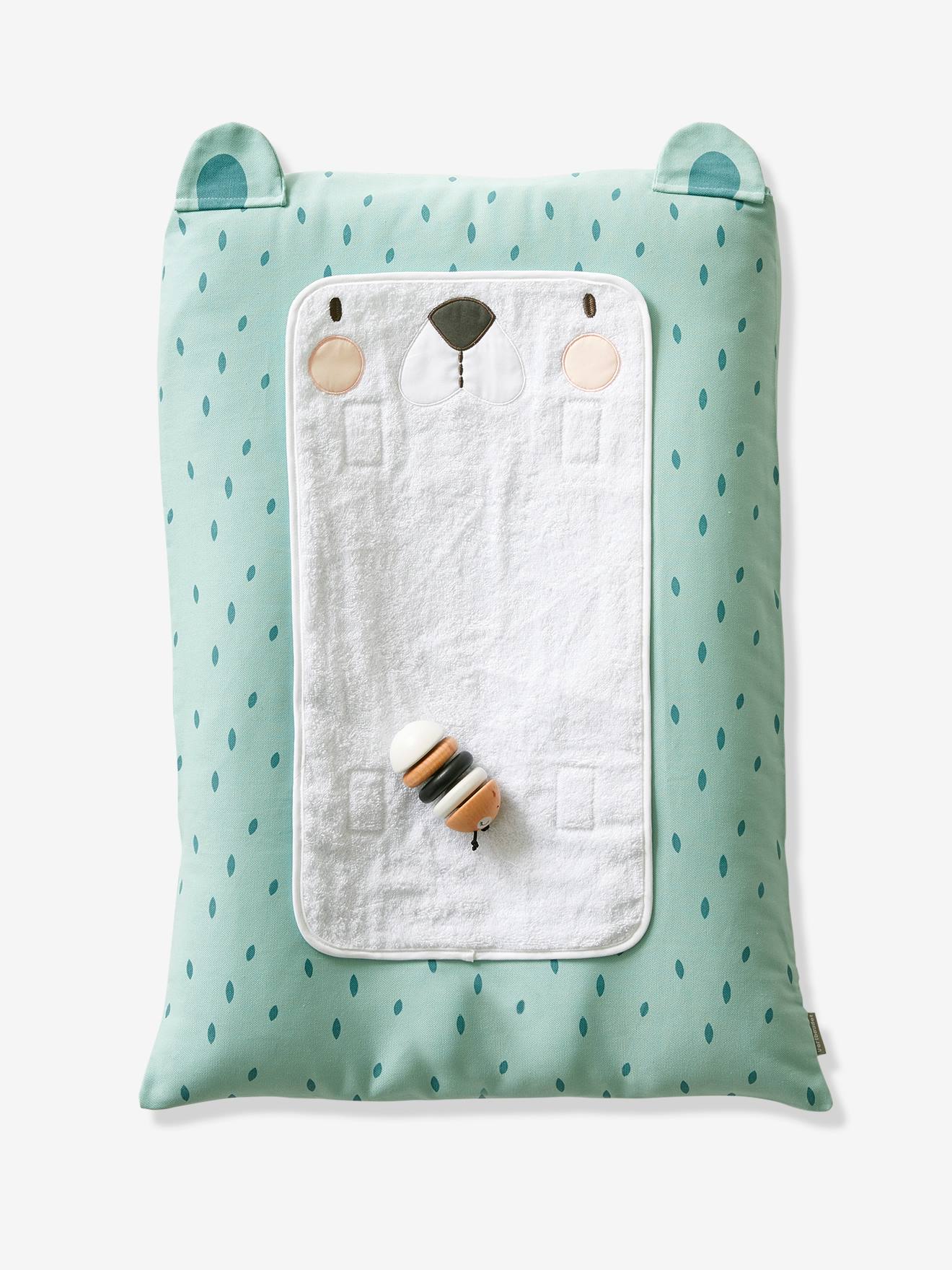 Such a cute changing mat cover to softly welcome baby when it's time to change his nappy. A cover that makes a decorative statement with its lovely details (embroidery, ears in relief...)! Practical: you get an extra cover to use! DIMENSIONS ÊÊ72 x 49 cm. Fastens with touch fastening strip Motifs with ears in relief and embroidered eyes Mat in towelling with resistant jersey knit, lining in PVC w