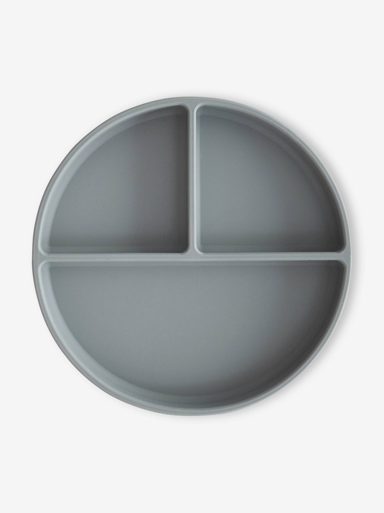 Divided silicone plate by MUSHIE Designed for their first independent meals, the MUSHIE plate features a suction cup that keeps it firmly in place, minimising the risk of spillage when learning to eat independently. Divided into 3 parts to separate food and serve portions suitable to your little one's appetite, it is available in a variety of colours to match the Mushie tableware collection. A b