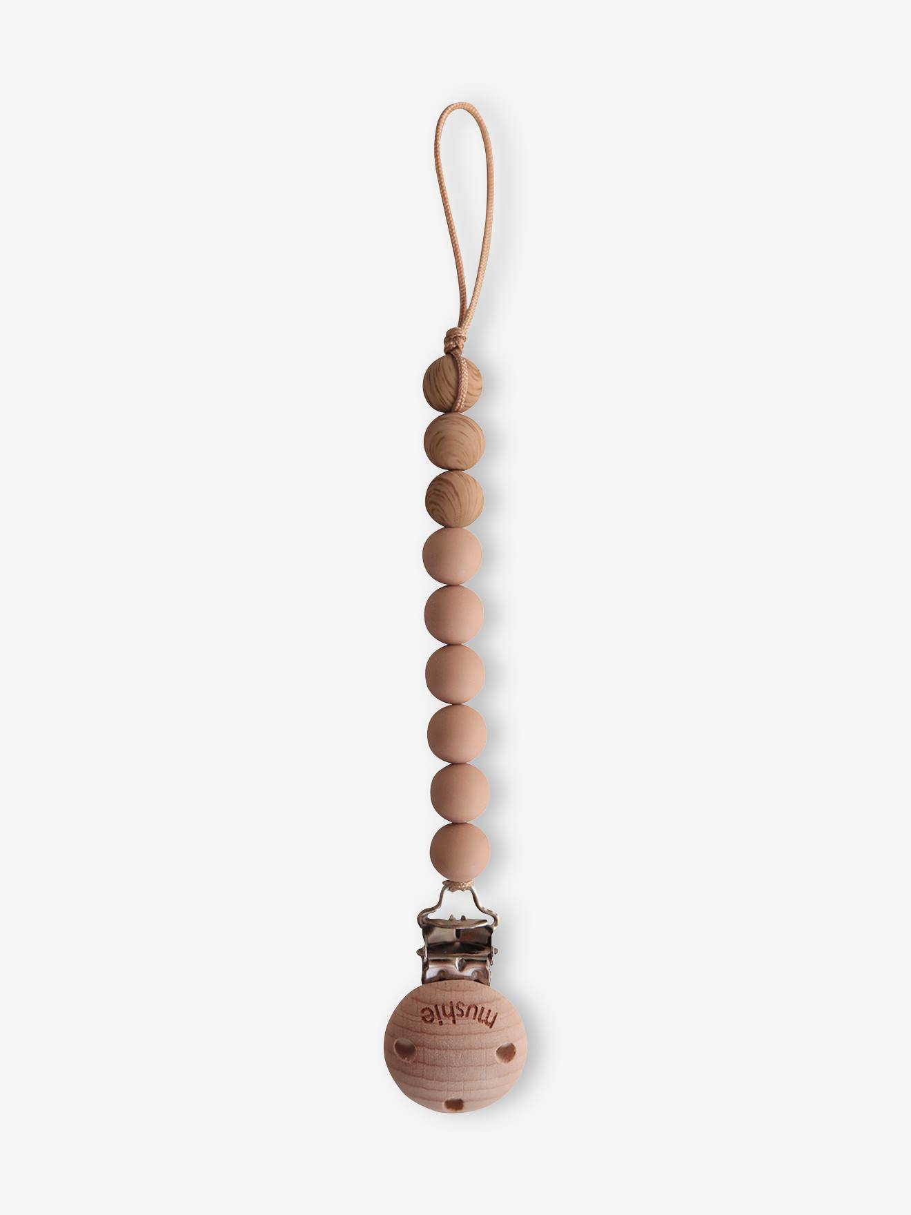 Dummy clip in silicone, Eva by MUSHIE Stylish and elegant, the MUSHIE dummy clip is a must-have to avoid losing your little one's dummy when out and about. Clipped onto the child's clothing, it is always within reach. Its combination of soft beads is ideal to stimulate baby's senses and motivate their fine motor skills. Available in a variety of colours that match the Mushie collection, a lovely