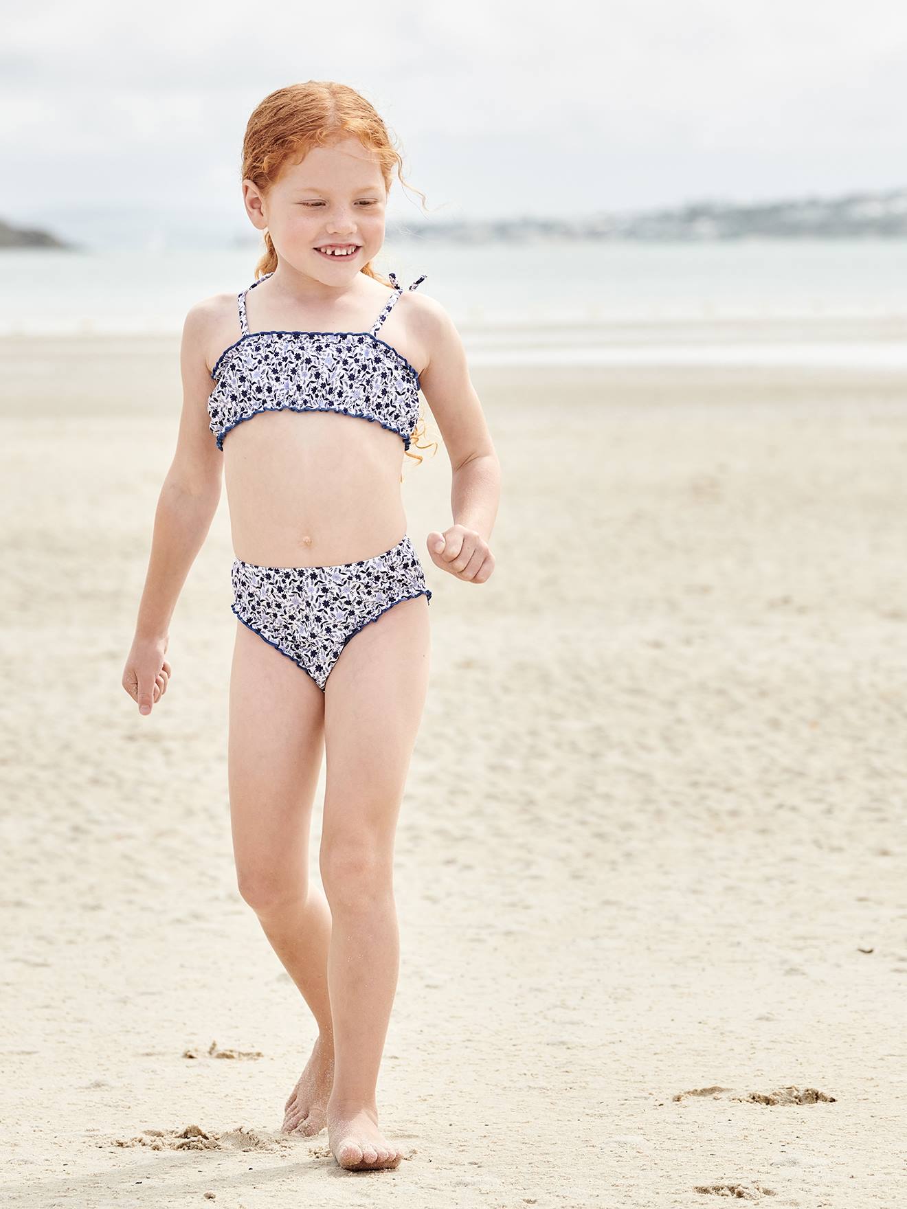 This bikini ticks all the boxes when it comes to making girls happy! A lovely floral print, small ruffles... We love this bohemian chic bikini! Bikini for girls Printed all over with small flowers Top part features ruffles on the straps Smocked at the top, on the front All-over print on the briefs Ruffled trim on the waistband MORE INFORMATION Seawater and chlorine resistant Rinse after each u