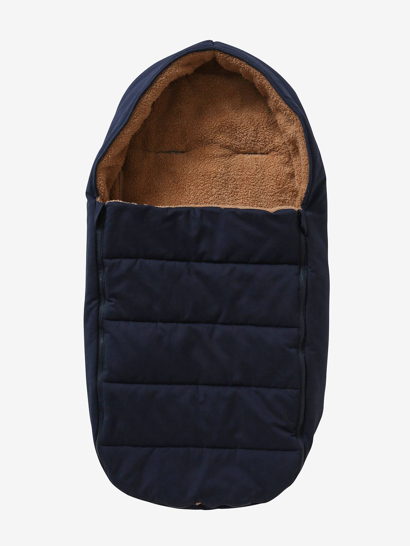 Very snug, anti-cold and anti-rain: with this special footmuff for pushchairs, you'll keep baby perfectly warm on all his outings as it's easy to install and well designed. Plus points of the throw footmuff Footmuff suitable for all types of pushchairs thanks to its many cut-outs on the back that allow the harness straps to pass through easily Wide opening (100 x 105 cm) and fastens with a zip