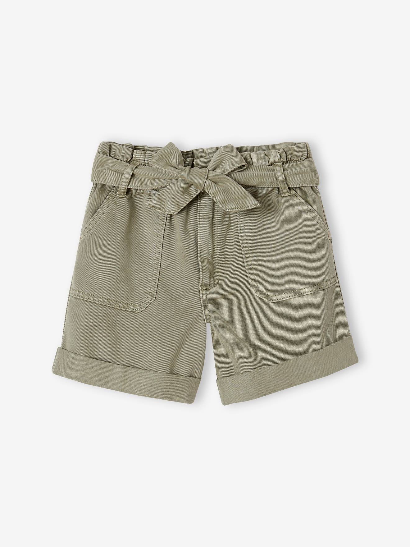 A paperbag cut to enhance their style and a trendy colour for an adventurous look. Girls will look lovely in these shorts, easy to team with the collection's sweatshirts and T-shirts. Paperbag shorts with tie belt, for girls High waist, elasticated paperbag waistband With zip and press stud Belt under belt loops ties at the front 2 large pockets with rivets on the front, 2 mock pockets on the bac