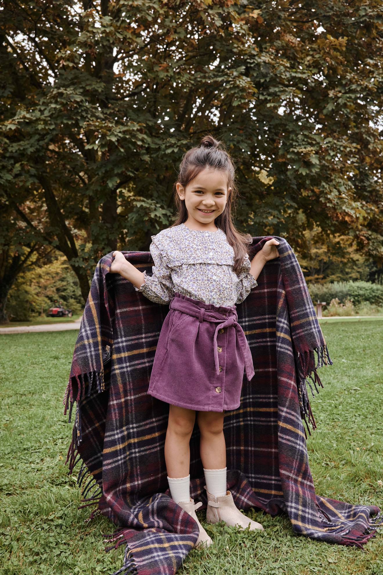 The indispensable corduroy skirt changes style... A slightly higher "paperbag" waistband with gathers, it's the absolute trending detail this season. This skirt is an indispensable item in their autumn wardrobe. They can wear it with their favourite sweatshirt or a blouse for a more bohemian look. "Paperbag" style skirt in corduroy for girls A-line cut High "paperbag" style waist, elasticated