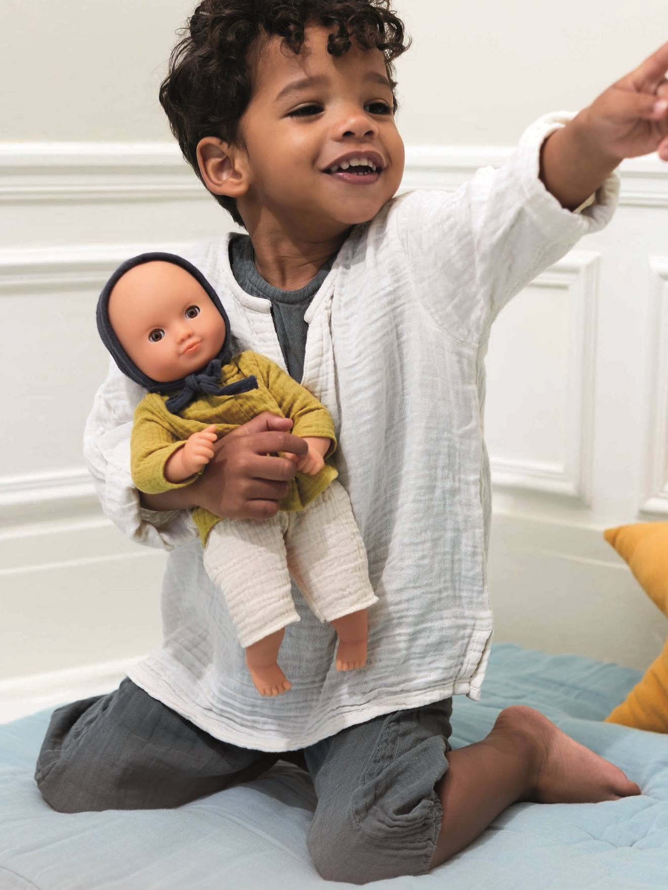 Pomea doll - DJECO The Pomea dolls by Djeco is the 2022 novelty! Suitable from 18 months, children will be able to carry their doll tenderly in their arms. Discover the incredible world of the Pomea dolls, with its beautiful collection of classic baby dolls and accessories with elegant motifs. Plus points of this product 32 cm baby doll with supple body. Neutral scented vinyl. Sleepy eyes.