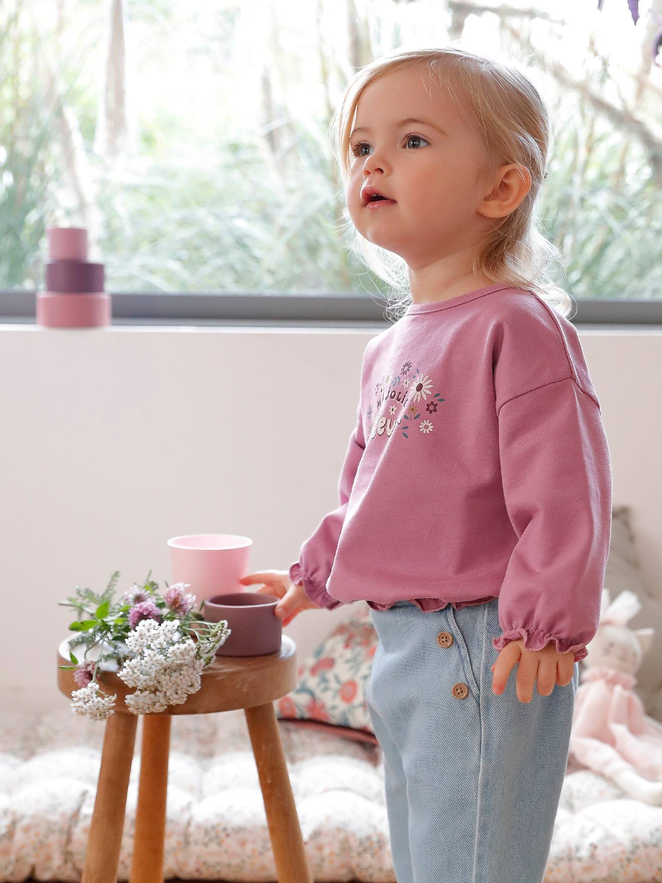 This jacket brightens up baby's wardrobe and is ideal to celebrate the arrival of warm sunny days. We love its sunny colour and joyful motif! This essential would be a source of beautiful, irresistible and colourful looks. Printed sweatshirt for babies Motif on the front in puff ink Long sleeves Ribbed edgings Printed sweatshirt for babies: 100% cotton